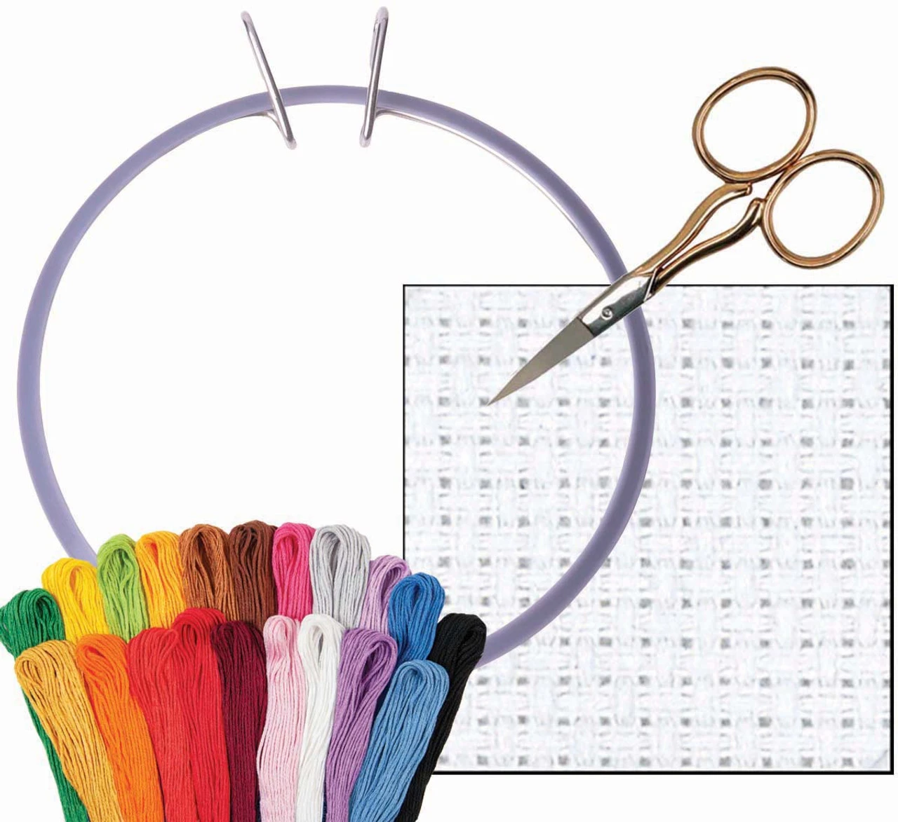 • Includes 20 skeins of embroidery floss in the most-popular colors