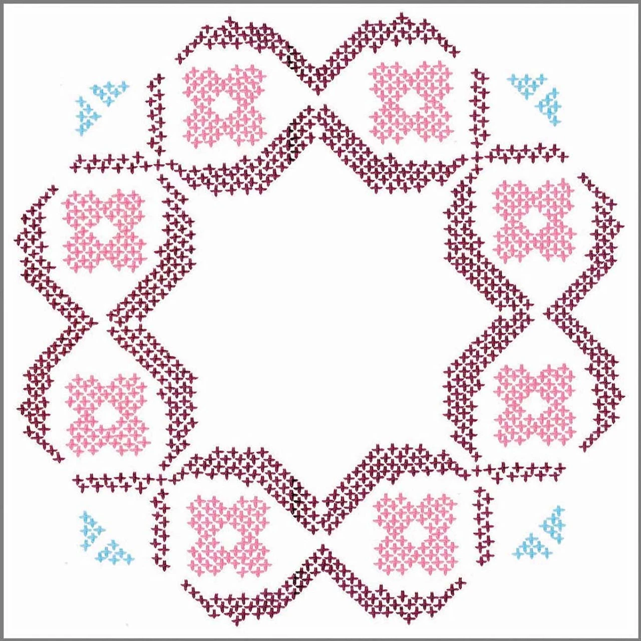 • Quilt blocks are stamped for cross-stitch on white polyester/cotton fabric.