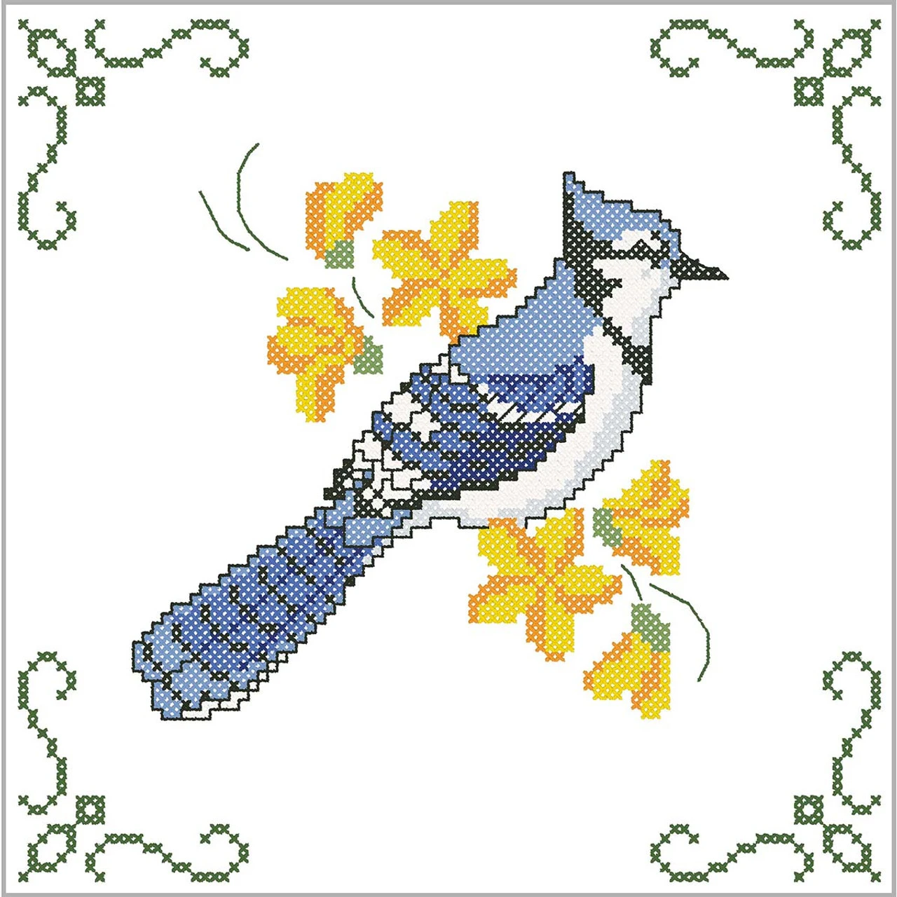 Herrschners Blue Jay Quilt Blocks Stamped Cross-Stitch