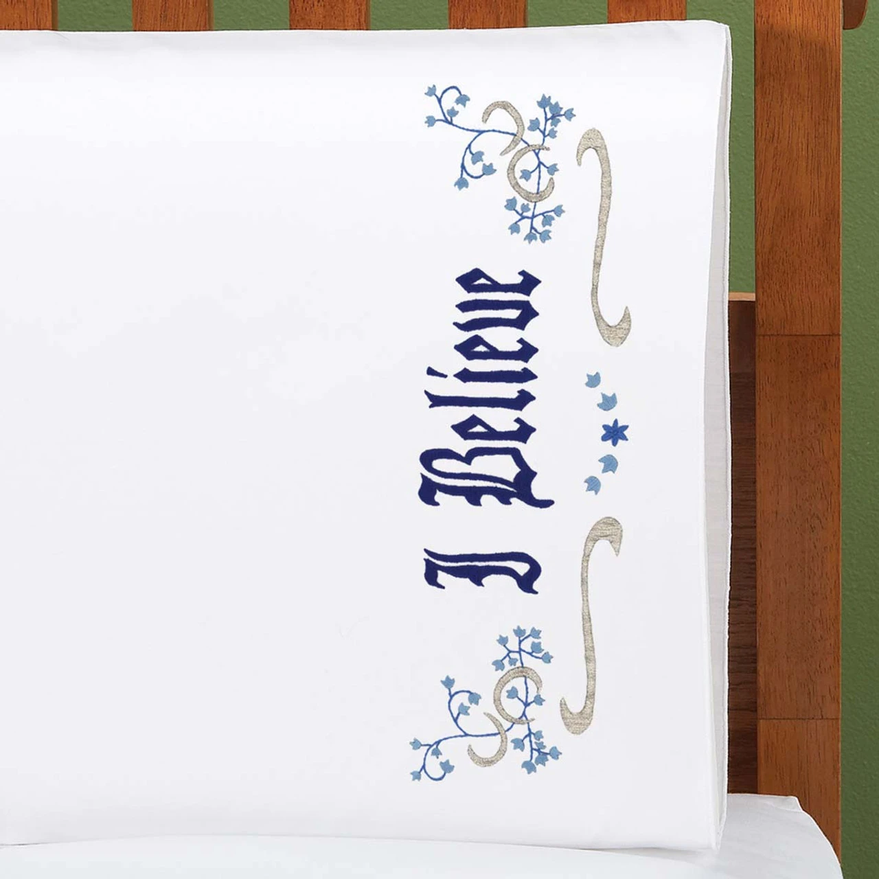 Herrschners I Believe Pillowcase Pair Stamped Embroidery