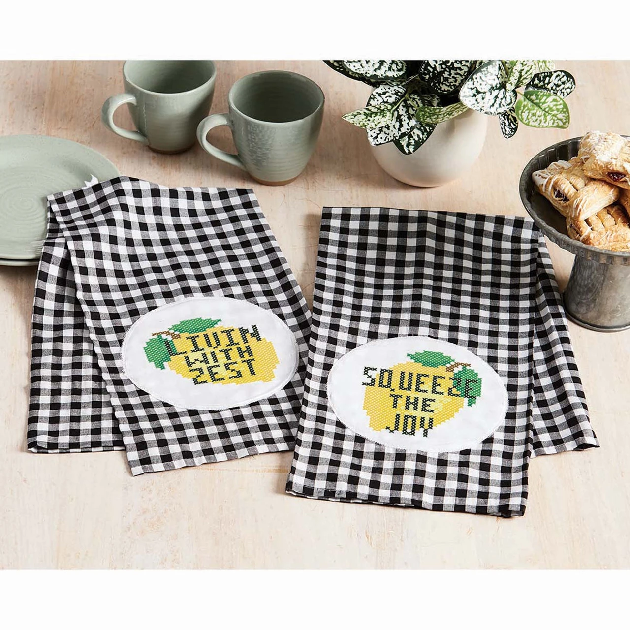 Herrschners Livin’ With Zest Towel Pair Stamped Cross-Stitch