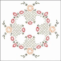• Quilt blocks are stamped for cross-stitch on white polyester/cotton fabric.
