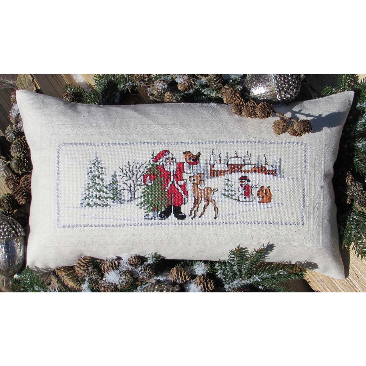• This counted cross-stitch kit includes pre-finished natural-colored 14-ct. aida cloth pillow cover with a fabric border and zippered backing, cotton floss, needle, and instructions.