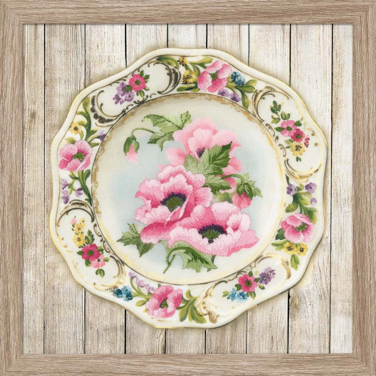 RIOLIS Plate With Pink Poppies Stamped Embroidery Kit