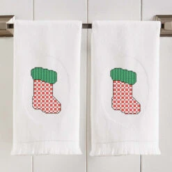 Herrschners Gingham Stockings Terry Towel Pair Stamped Cross-Stitch